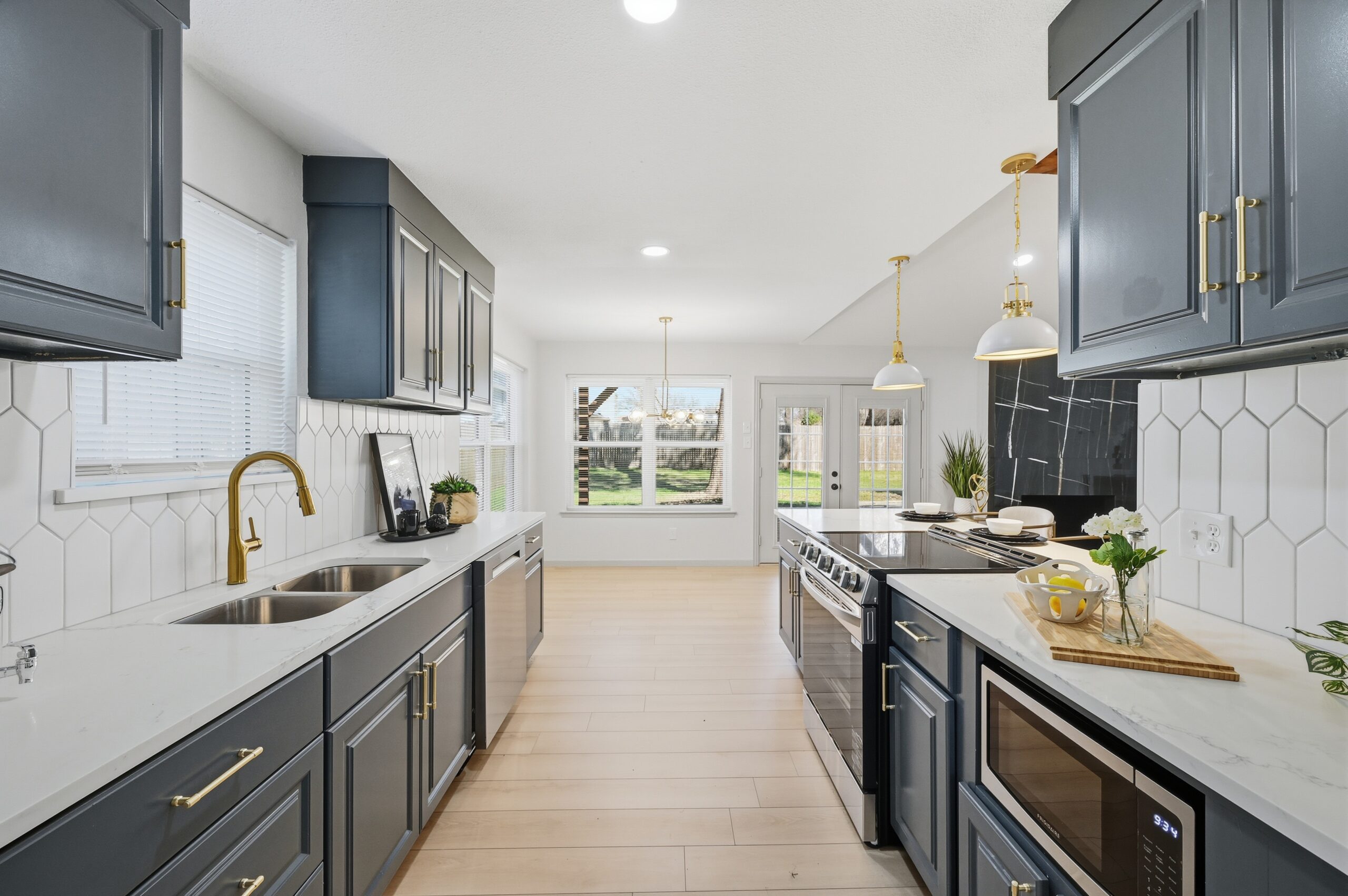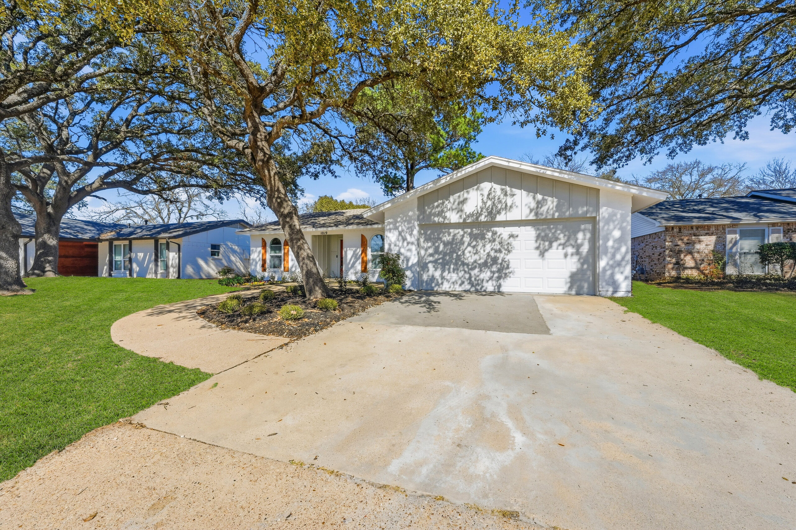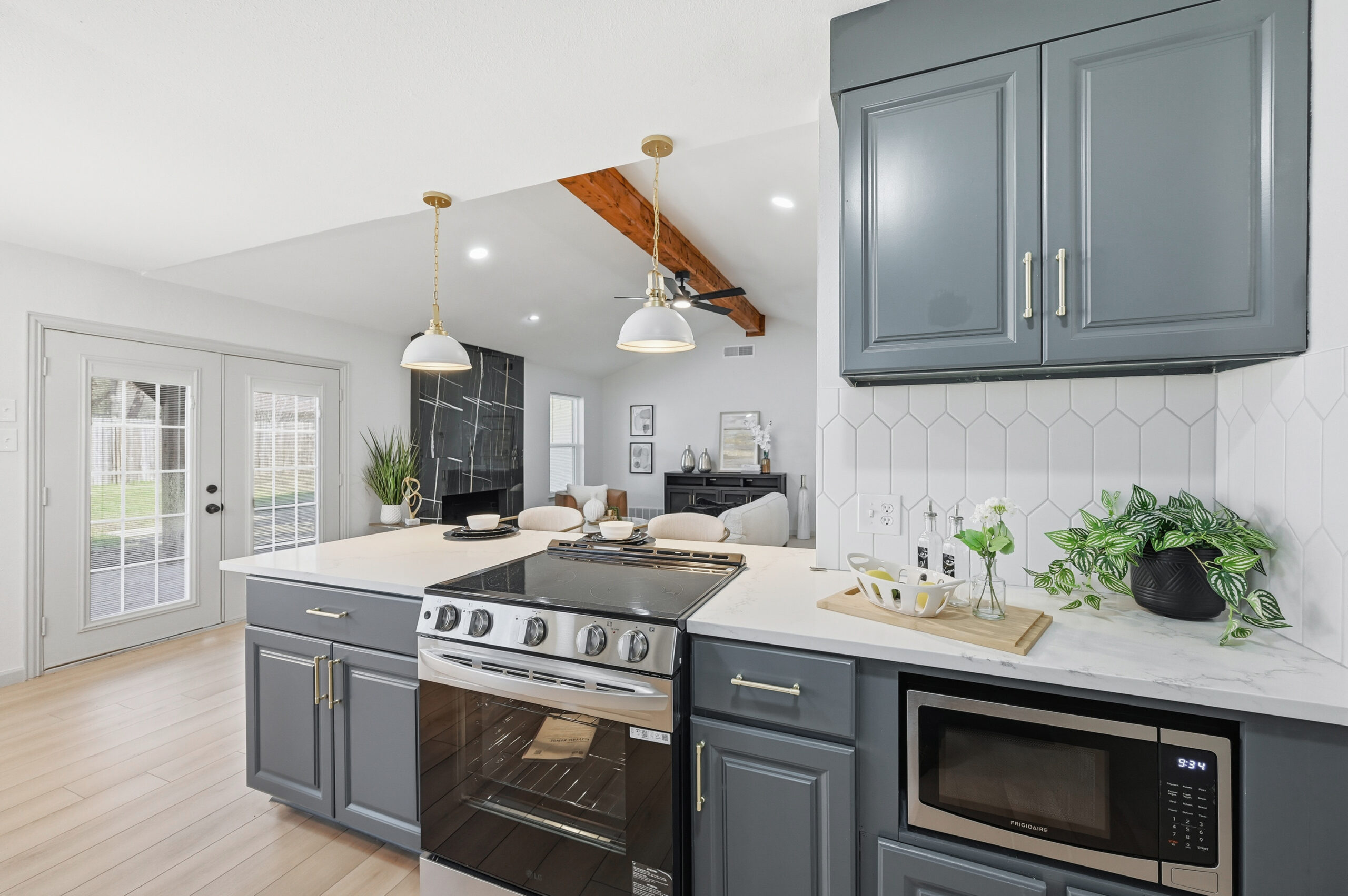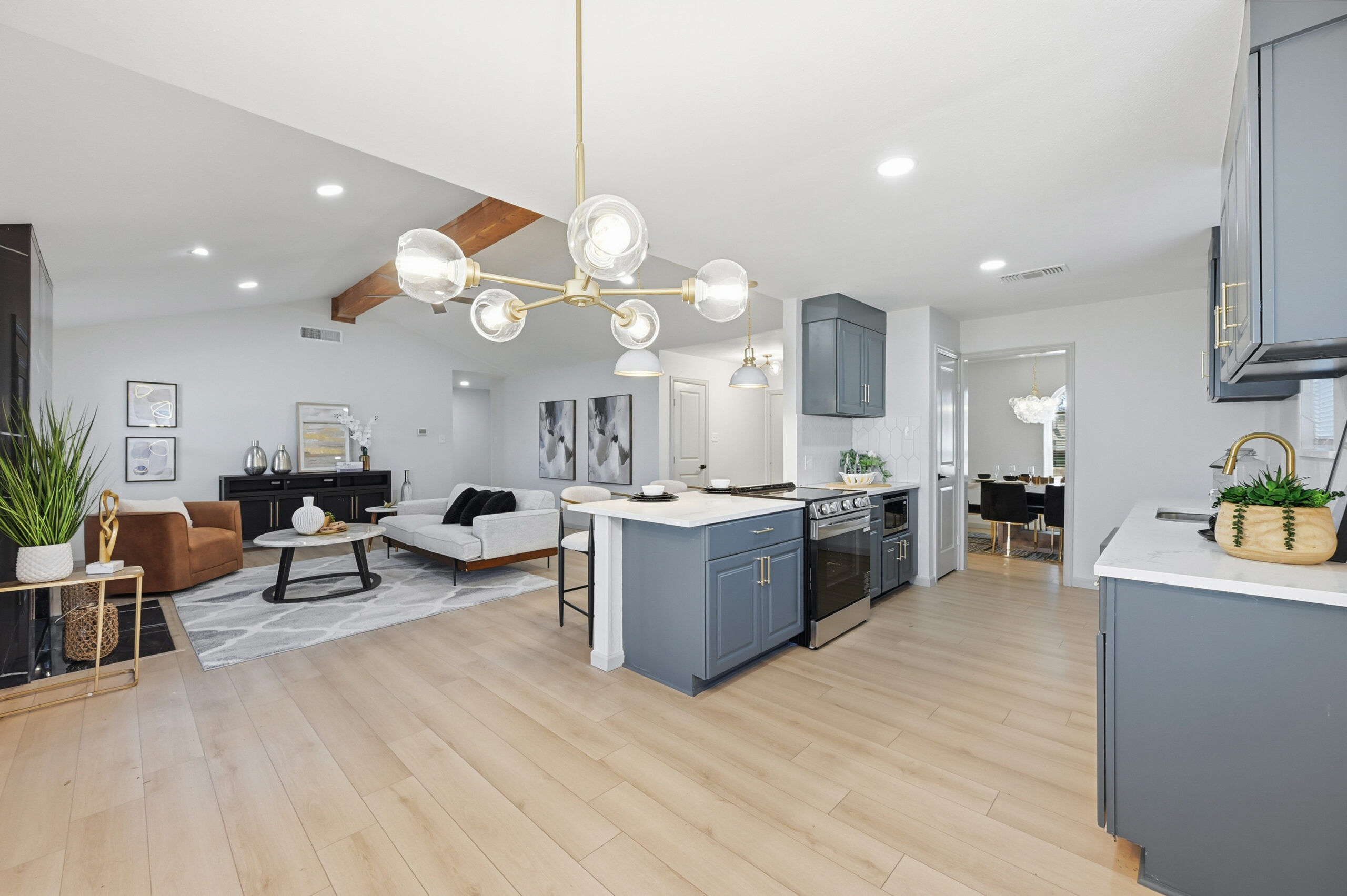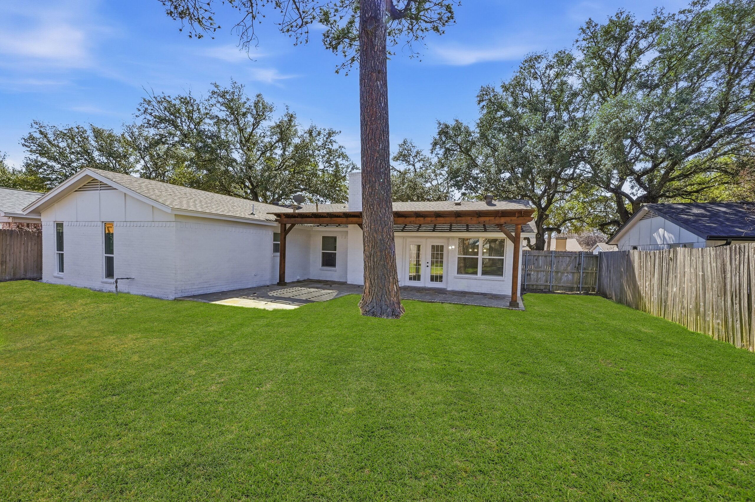 Welcome home to the perfect blend of luxury and comfort in this beautifully updated residence. This stunning home offers four bedrooms, two bathrooms, a formal dining area, and exceptional curb appeal enhanced by mature, established trees. Recent upgrades include fresh interior and exterior paint, new doors, stylish light fixtures, and updated flooring throughout, along with completely redesigned kitchen and bathrooms. Upon entry, you are greeted by an inviting living space featuring vaulted ceilings with a cedar beam, recessed lighting, and a striking modern fireplace. The thoughtfully designed kitchen is ideal for both everyday living and entertaining, showcasing new stainless steel appliances, granite countertops, refinished cabinetry with elegant gold hardware, and a contemporary backsplash. The spacious primary suite offers a walk-in closet and a luxurious en-suite bathroom, highlighted by an oversized walk-in shower with dual shower heads and a sleek floating vanity. Outdoors, the fully fenced backyard provides privacy and a large covered patio—perfect for relaxing or hosting guests. This exceptional home offers comfort, style, and functionality in every detail. This isn’t one you’ll want to miss!