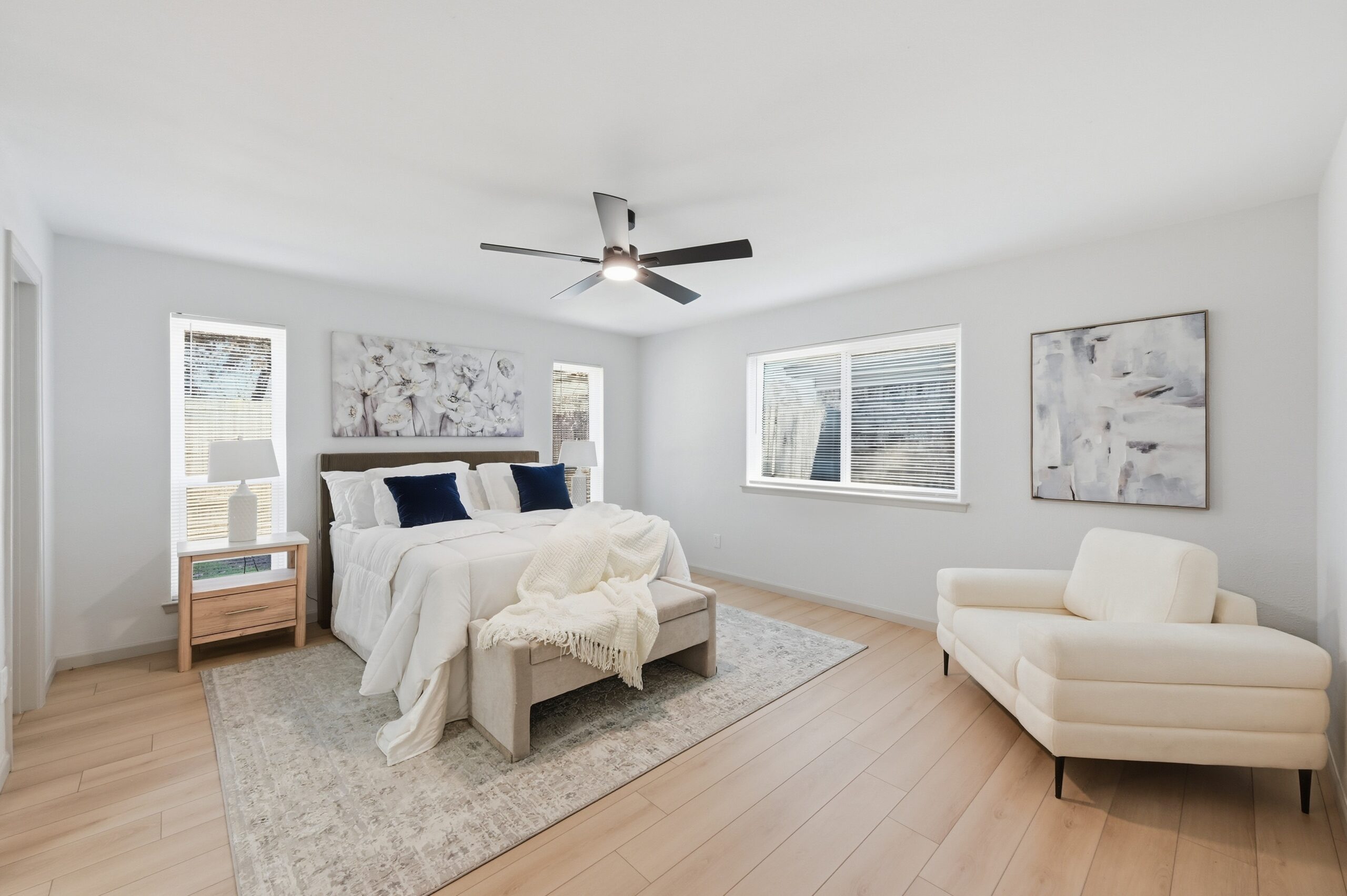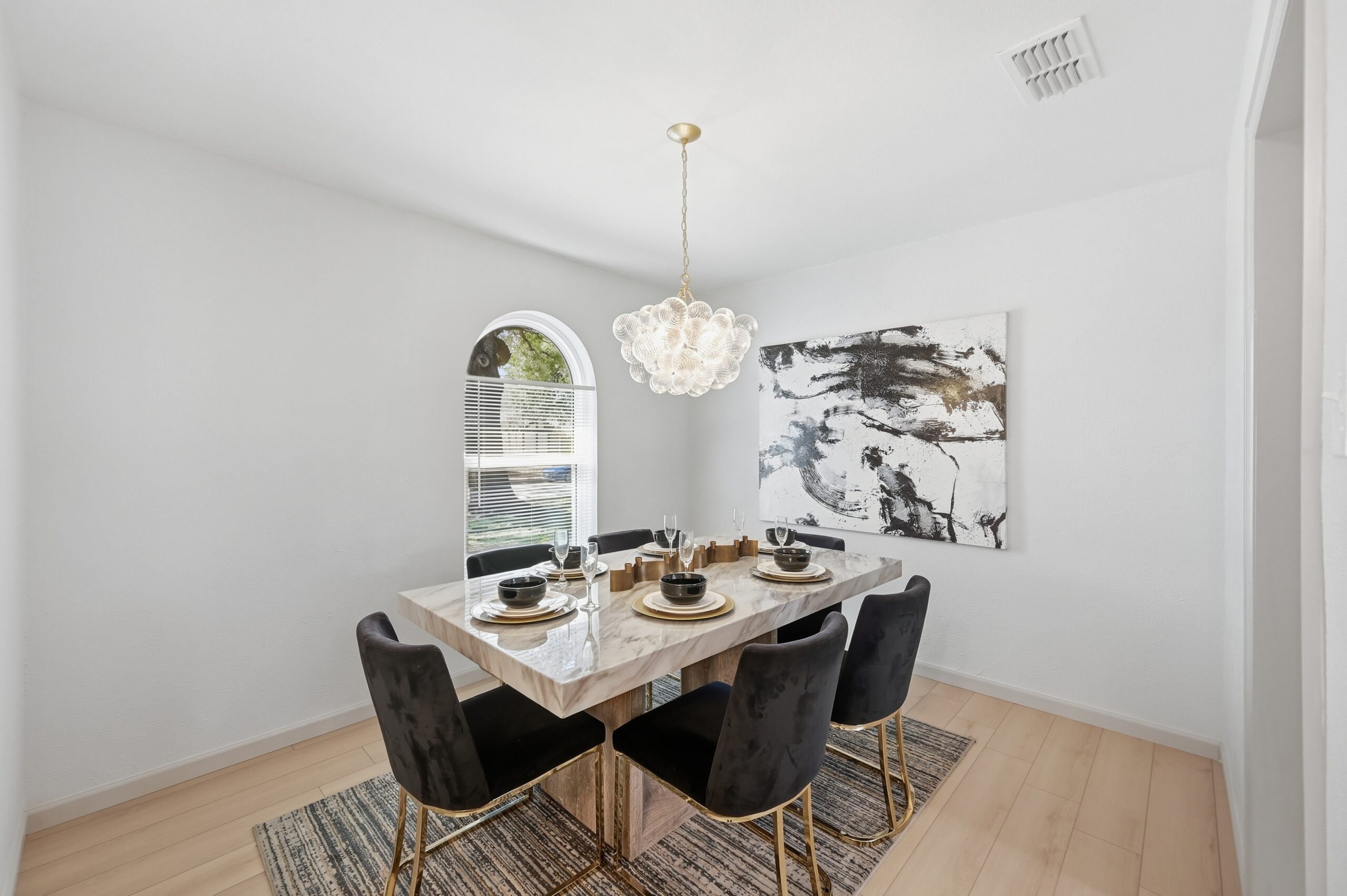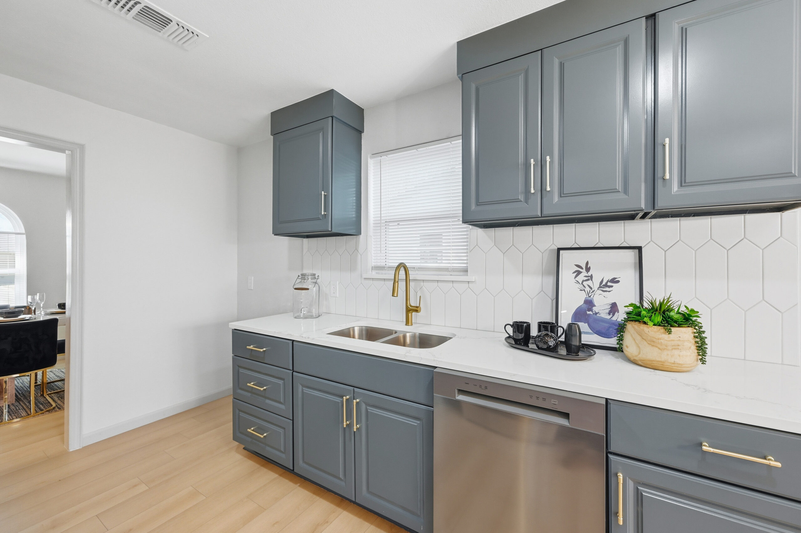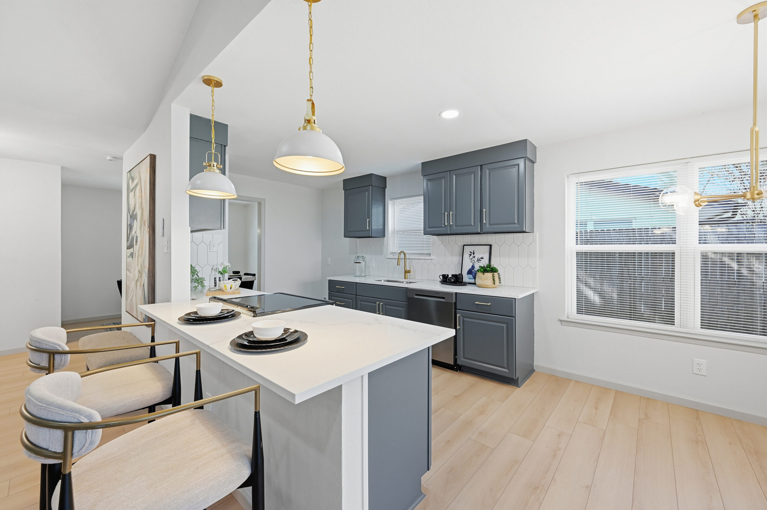 Welcome home to the perfect blend of luxury and comfort in this beautifully updated residence. This stunning home offers four bedrooms, two bathrooms, a formal dining area, and exceptional curb appeal enhanced by mature, established trees. Recent upgrades include fresh interior and exterior paint, new doors, stylish light fixtures, and updated flooring throughout, along with completely redesigned kitchen and bathrooms. Upon entry, you are greeted by an inviting living space featuring vaulted ceilings with a cedar beam, recessed lighting, and a striking modern fireplace. The thoughtfully designed kitchen is ideal for both everyday living and entertaining, showcasing new stainless steel appliances, granite countertops, refinished cabinetry with elegant gold hardware, and a contemporary backsplash. The spacious primary suite offers a walk-in closet and a luxurious en-suite bathroom, highlighted by an oversized walk-in shower with dual shower heads and a sleek floating vanity. Outdoors, the fully fenced backyard provides privacy and a large covered patio—perfect for relaxing or hosting guests. This exceptional home offers comfort, style, and functionality in every detail. This isn’t one you’ll want to miss!