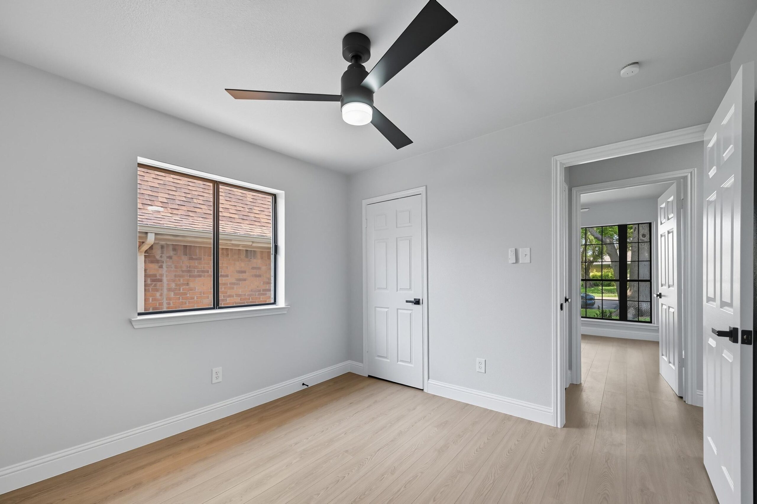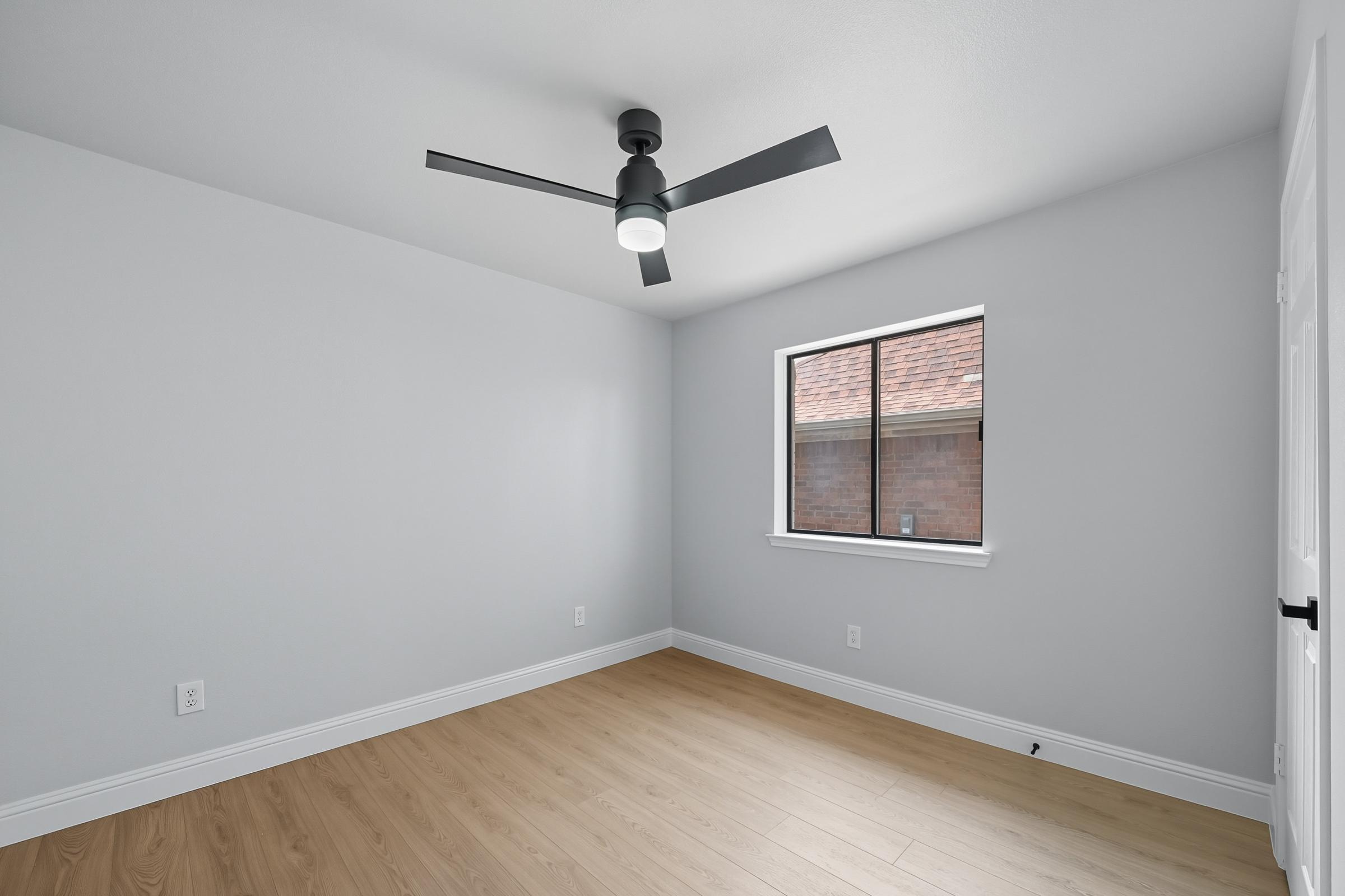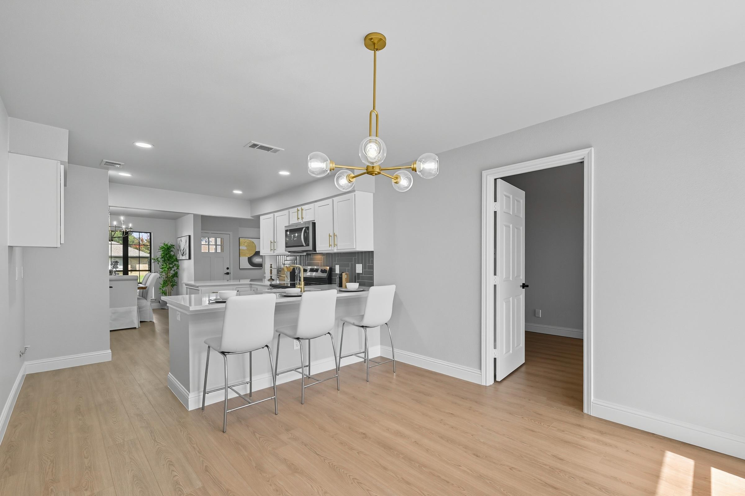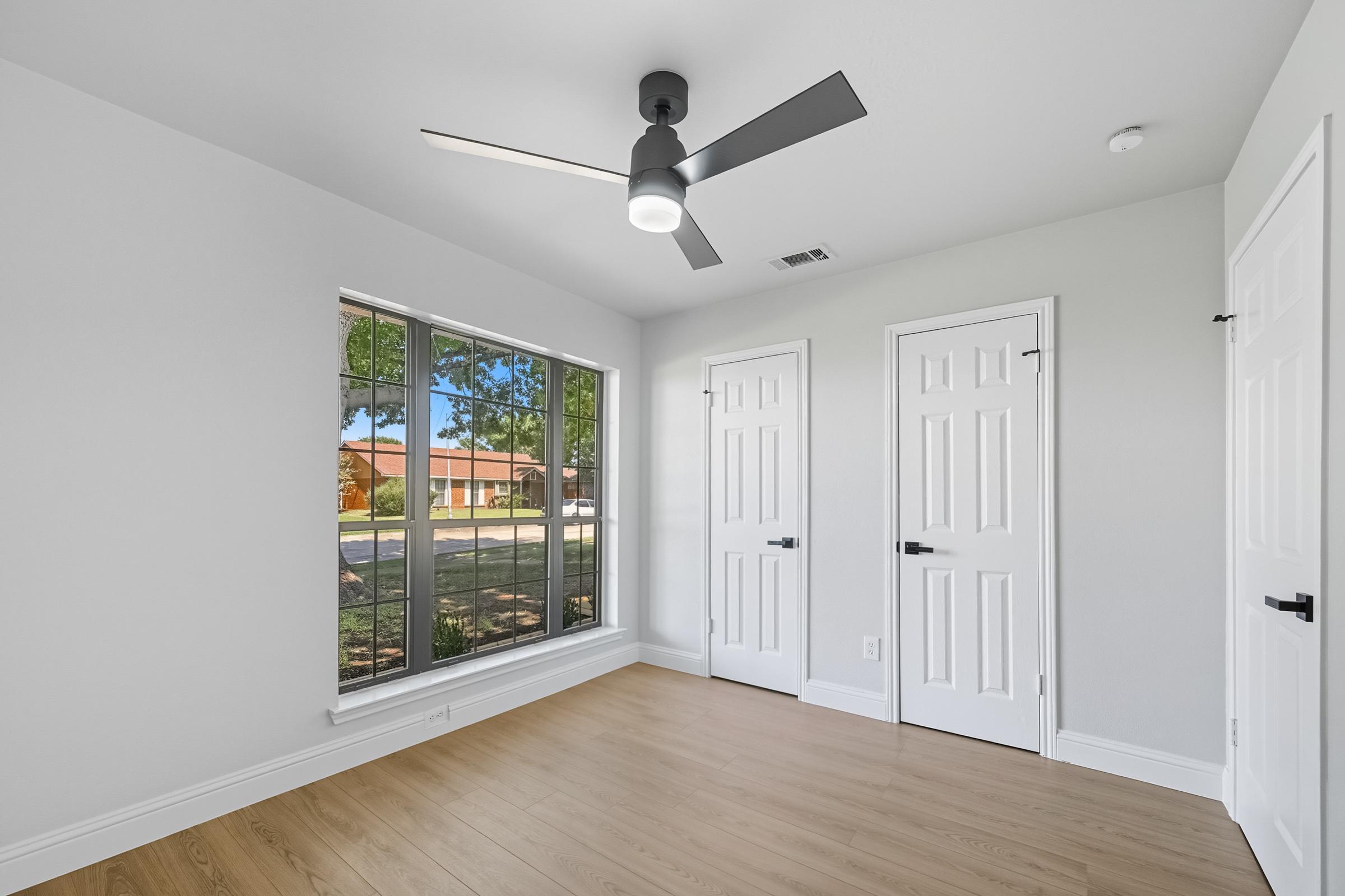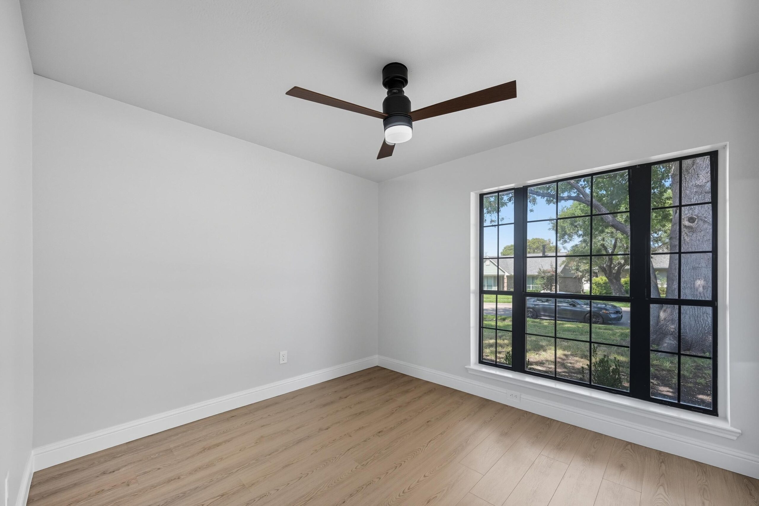 Welcome to this beautifully renovated 4 bed, 2 bath home! The floor plan is open and bright with a semi-formal dining area, breakfast nook, and 4th bedroom that could also be used as an office. Updates include brand new roof, interior and exterior paint, doors, light fixtures, flooring and completely reimagined kitchen and bathrooms. Those who like to cook and entertain will fall in love with the new stainless steel appliances, Calcutta quartz countertops, and shaker cabinet doors in the kitchen. The primary bedroom is a great size with a walk in closet and a gorgeous modern walk in shower. Once outside you are welcomed by a large patio with a new pergola-perfect for grilling out in fall weather! The back yard is fenced for privacy and an alley drive leads to covered parking for 3. Located just minutes from highway 635 making travel a breeze. This is one you won’t want to miss!