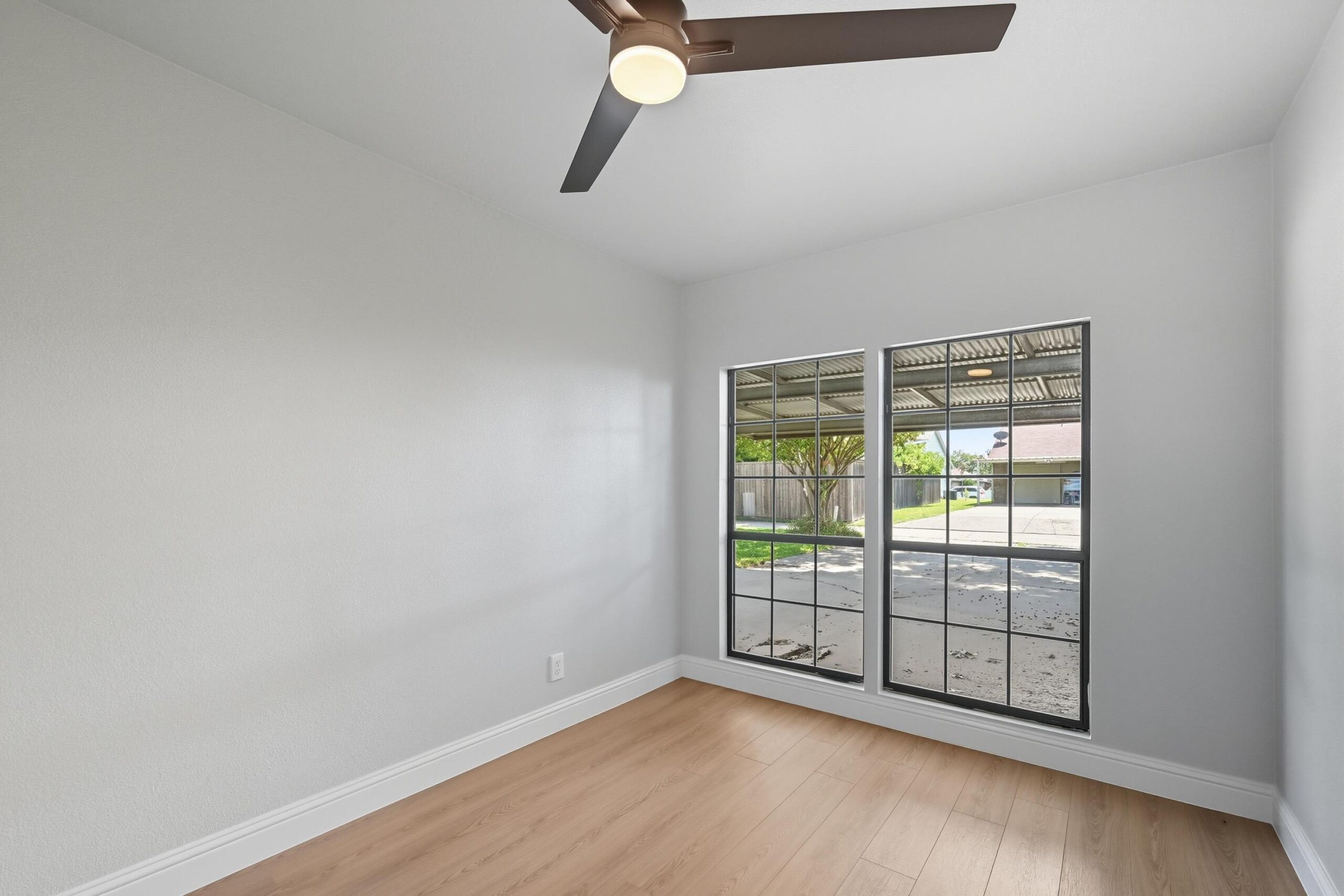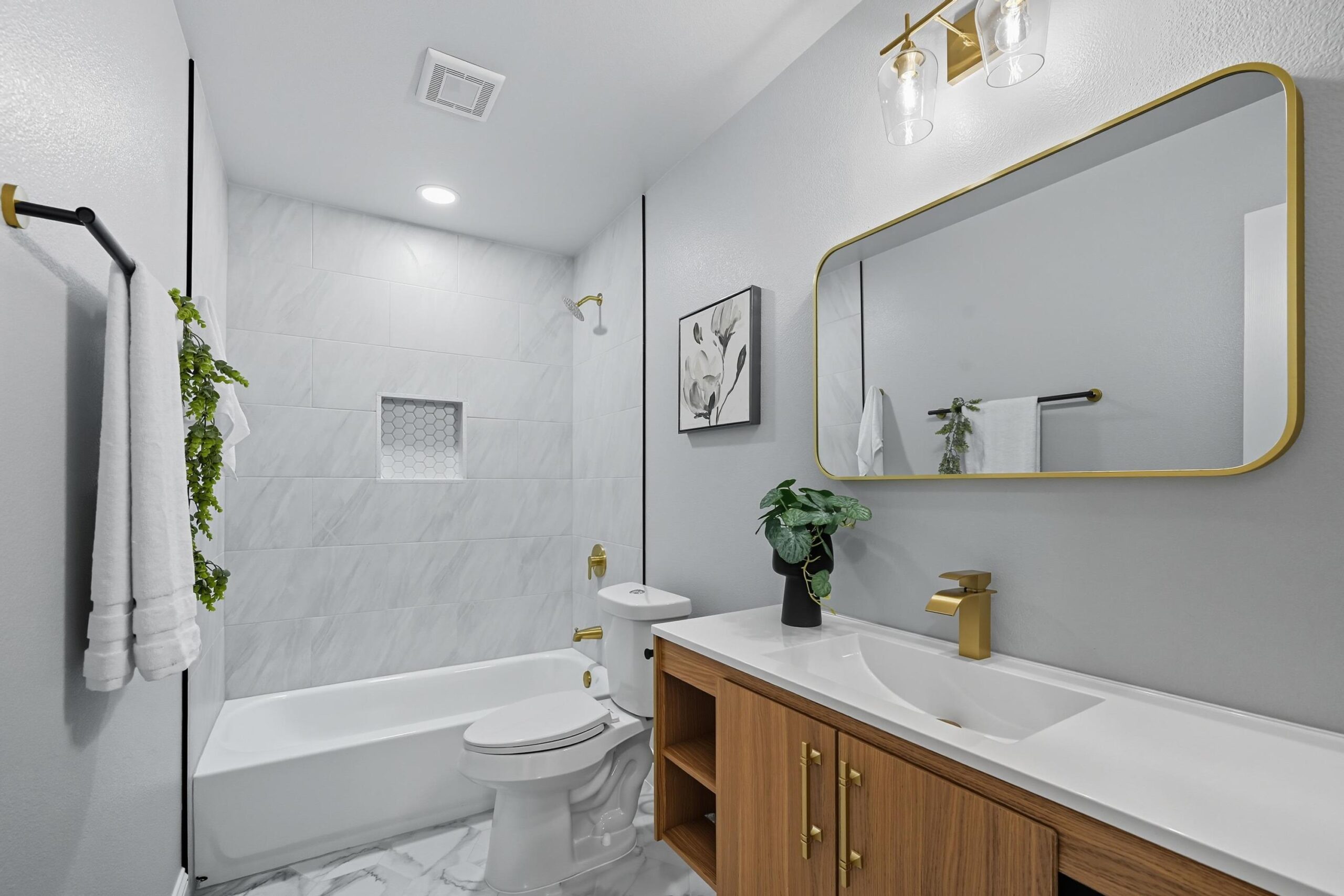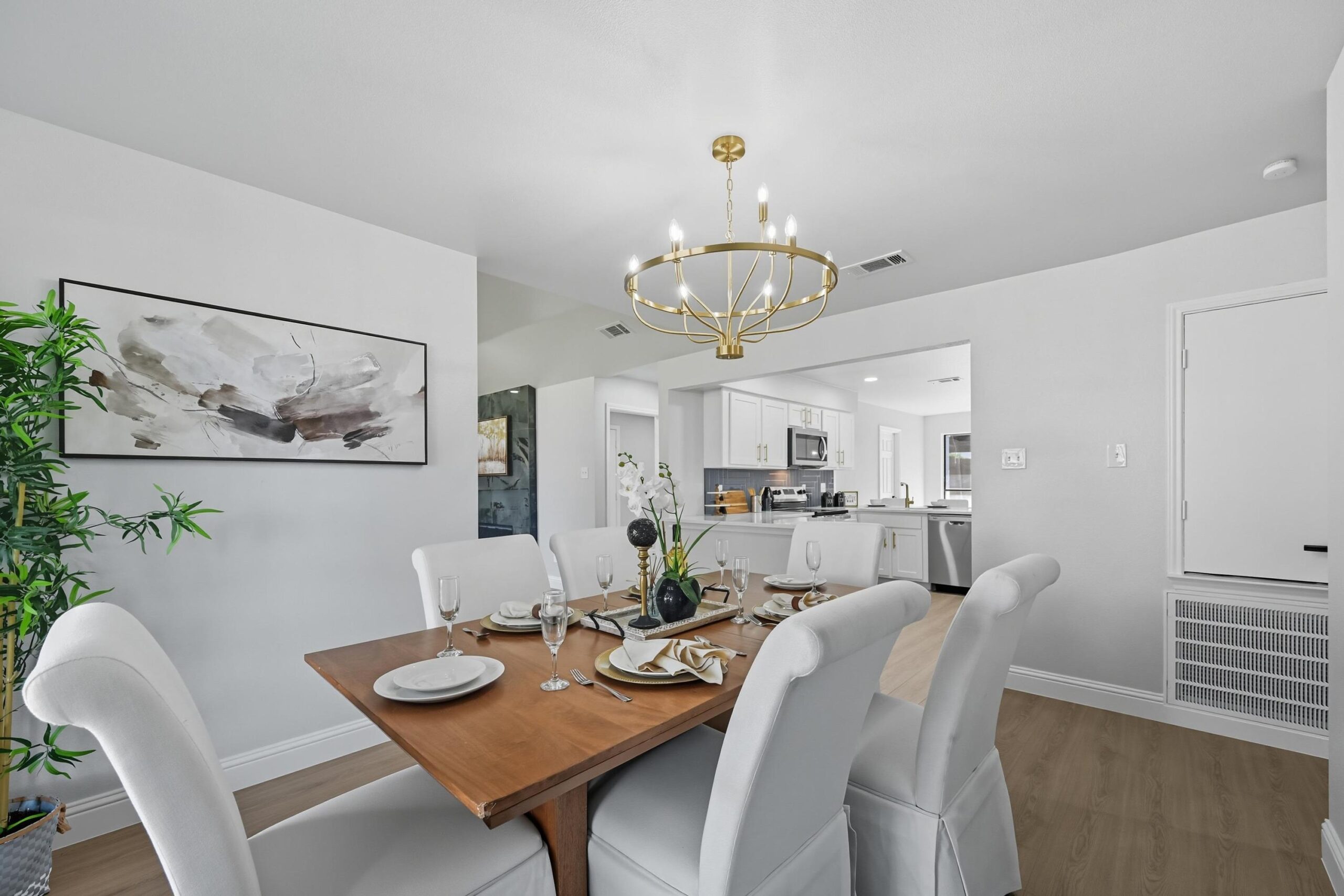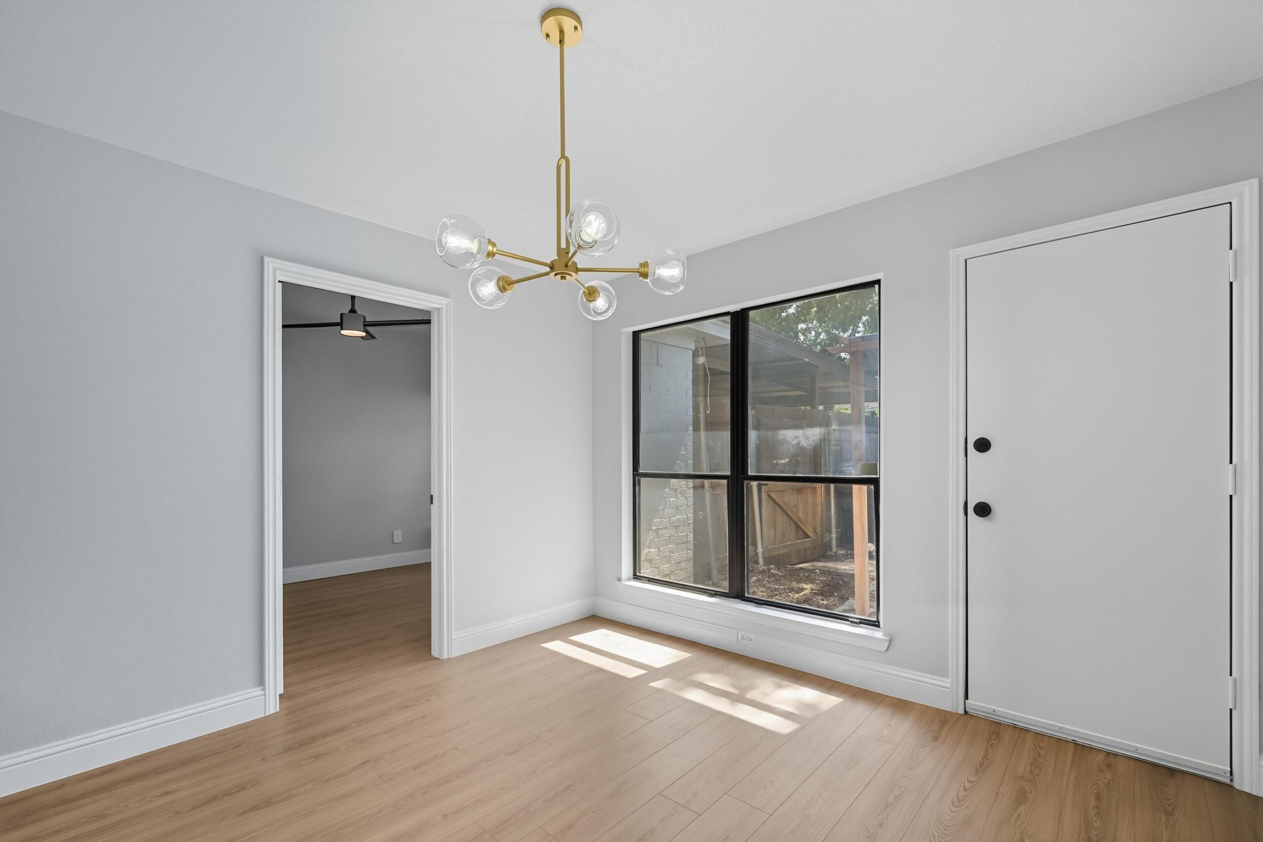 Welcome to this beautifully renovated 4 bed, 2 bath home! The floor plan is open and bright with a semi-formal dining area, breakfast nook, and 4th bedroom that could also be used as an office. Updates include brand new roof, interior and exterior paint, doors, light fixtures, flooring and completely reimagined kitchen and bathrooms. Those who like to cook and entertain will fall in love with the new stainless steel appliances, Calcutta quartz countertops, and shaker cabinet doors in the kitchen. The primary bedroom is a great size with a walk in closet and a gorgeous modern walk in shower. Once outside you are welcomed by a large patio with a new pergola-perfect for grilling out in fall weather! The back yard is fenced for privacy and an alley drive leads to covered parking for 3. Located just minutes from highway 635 making travel a breeze. This is one you won’t want to miss!