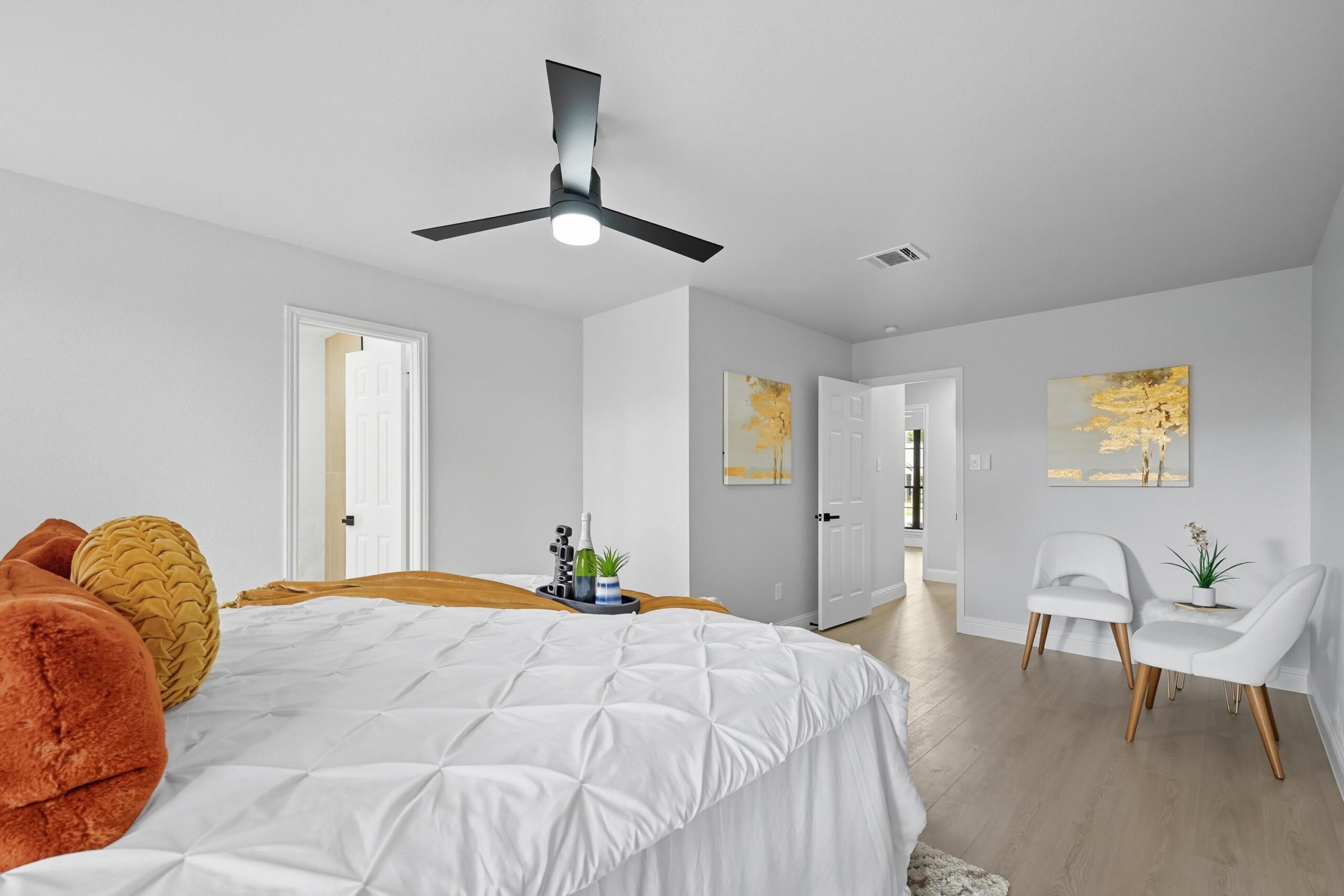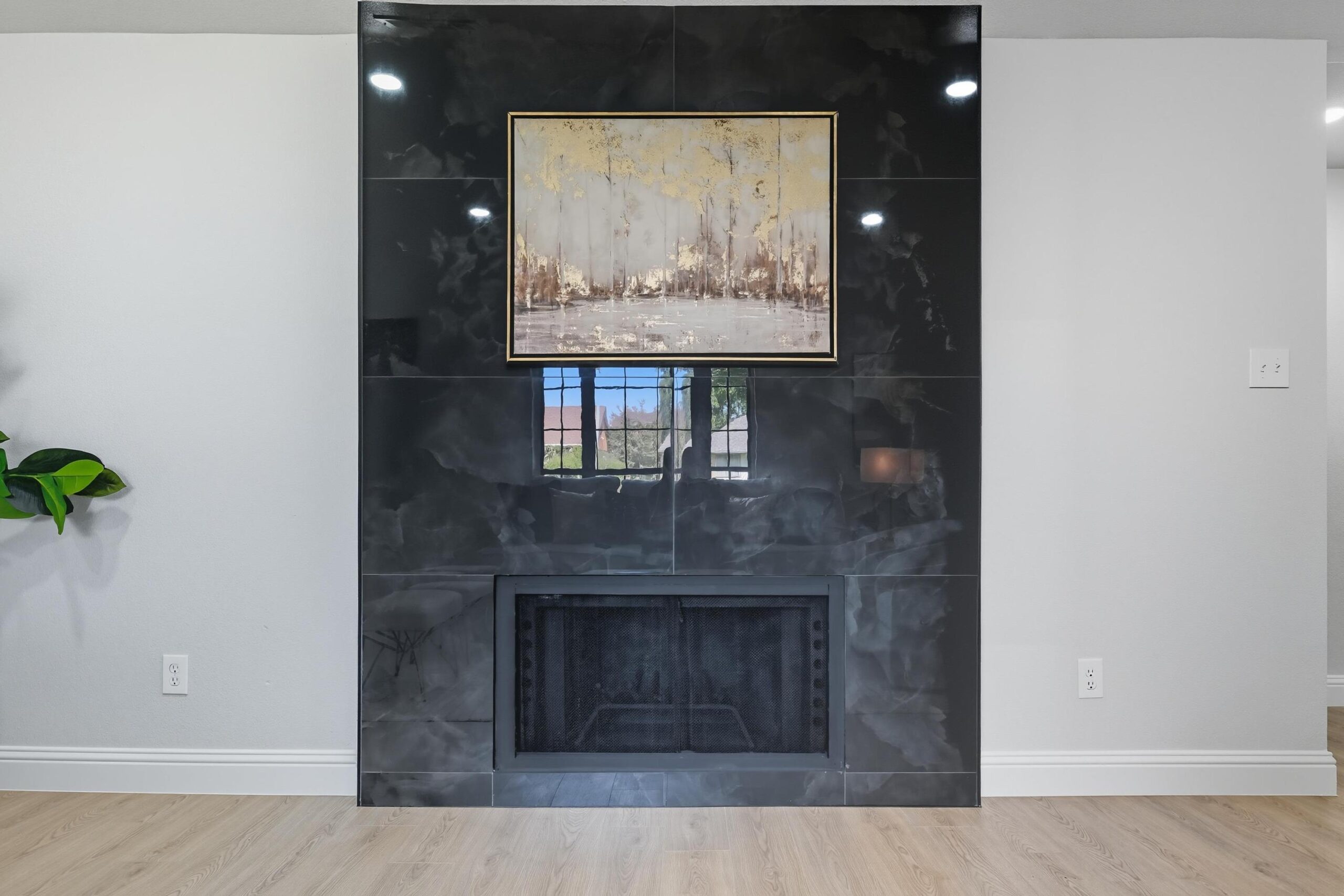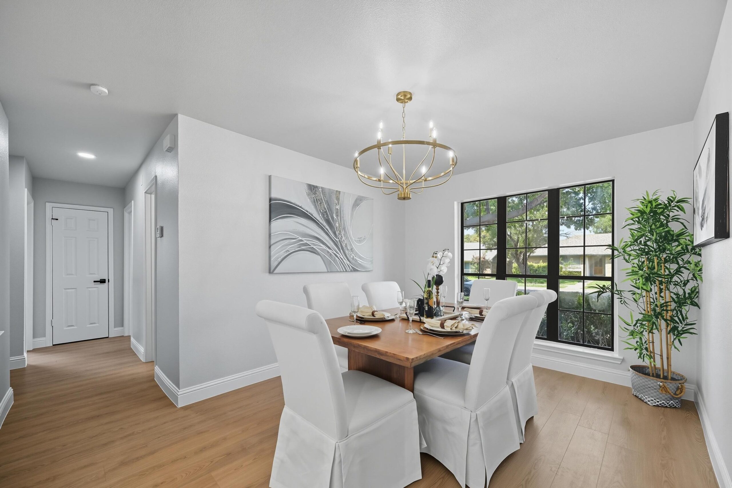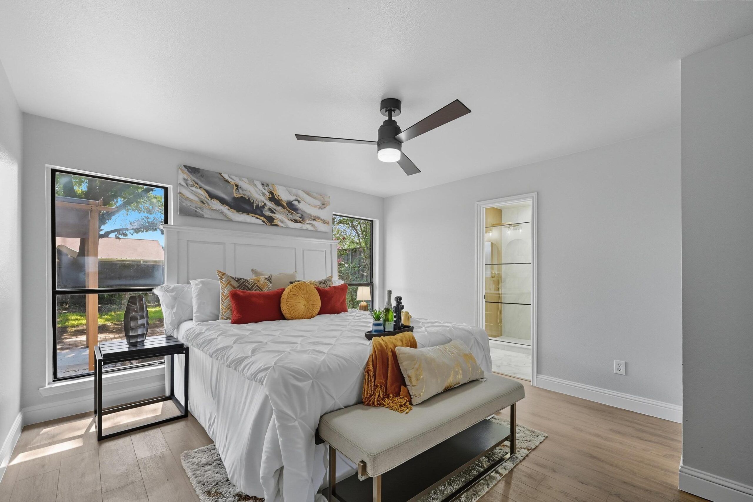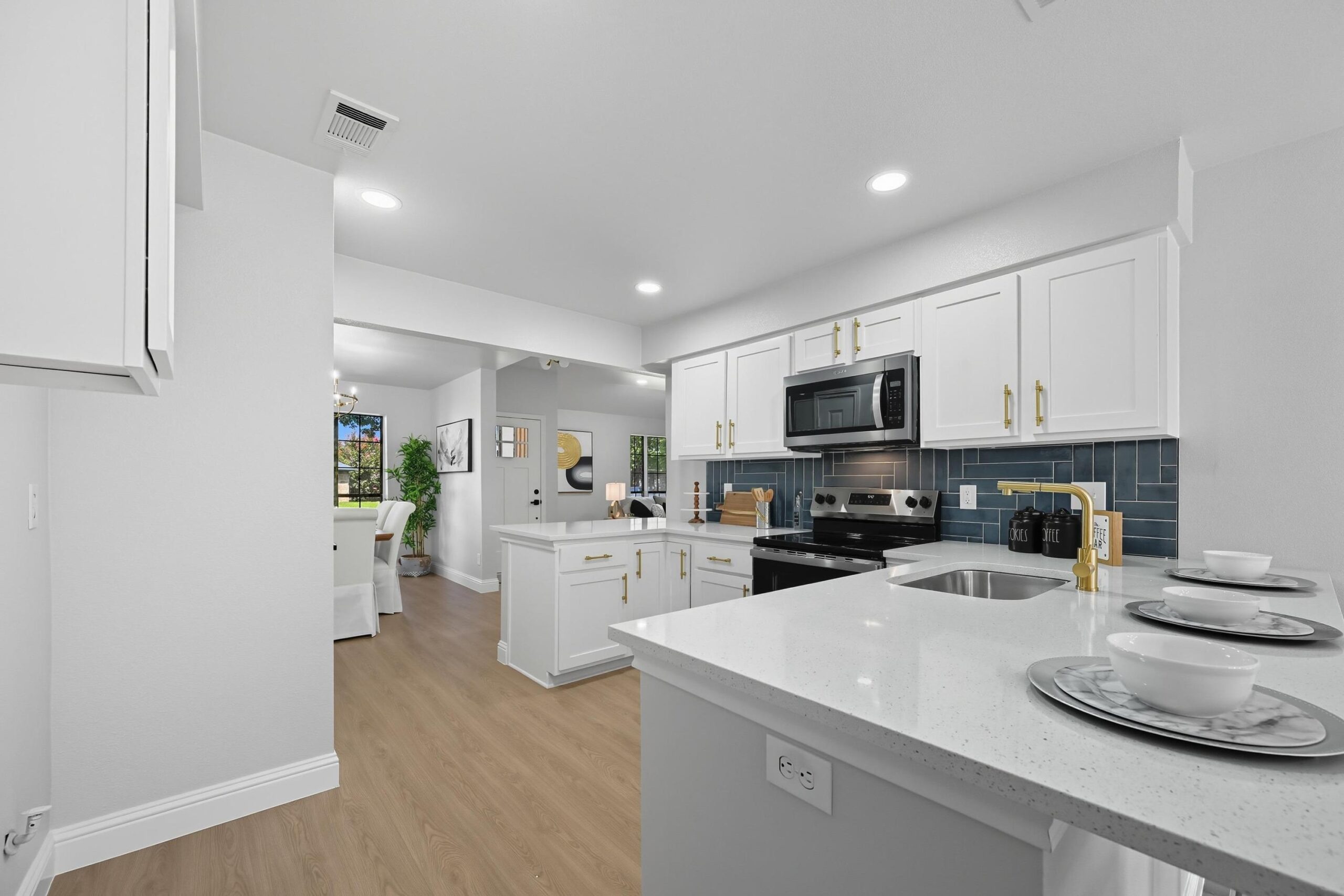 Welcome to this beautifully renovated 4 bed, 2 bath home! The floor plan is open and bright with a semi-formal dining area, breakfast nook, and 4th bedroom that could also be used as an office. Updates include brand new roof, interior and exterior paint, doors, light fixtures, flooring and completely reimagined kitchen and bathrooms. Those who like to cook and entertain will fall in love with the new stainless steel appliances, Calcutta quartz countertops, and shaker cabinet doors in the kitchen. The primary bedroom is a great size with a walk in closet and a gorgeous modern walk in shower. Once outside you are welcomed by a large patio with a new pergola-perfect for grilling out in fall weather! The back yard is fenced for privacy and an alley drive leads to covered parking for 3. Located just minutes from highway 635 making travel a breeze. This is one you won’t want to miss!