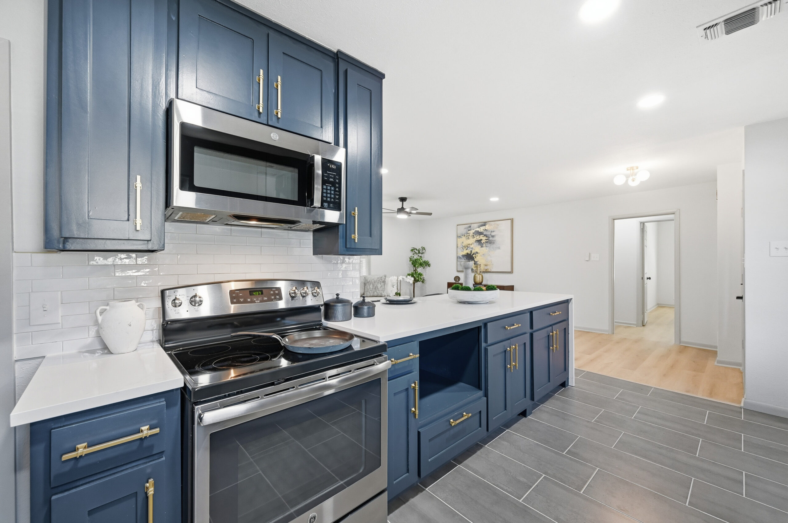 Welcome home to all things cozy and modern! This beautifully renovated 3-bedroom, 2-bath home is move-in ready and waiting for its new family. It’s bursting with curb appeal thanks to established trees and landscaping, rich cedar accents, and a sprawling front porch perfect for relaxing evenings. Inside, you’ll find new flooring, paint, doors, and light fixtures throughout, along with fully redesigned kitchen and bathrooms. The kitchen features custom cabinet doors, quartz countertops, gold hardware, and stainless steel appliances—offering the perfect blend of style and functionality. The living area is bright and inviting, with large windows that fill the space with natural light and overlook the backyard. The primary suite offers a spacious retreat with a modern tiled shower and floating quartz vanity. The guest bathroom is equally impressive, boasting a dual vanity, new mirrors, and a beautifully re-tiled shower. Step outside to the large covered patio—ideal for sipping your morning coffee on cool fall days. The backyard is fully fenced and provides plenty of room for kids and pets to play. Located less than 10 miles from Fort Worth favorites like Hulen Mall, The Shops at Clearfork, and the Waterside shopping and dining area! This is one you won’t want to miss!