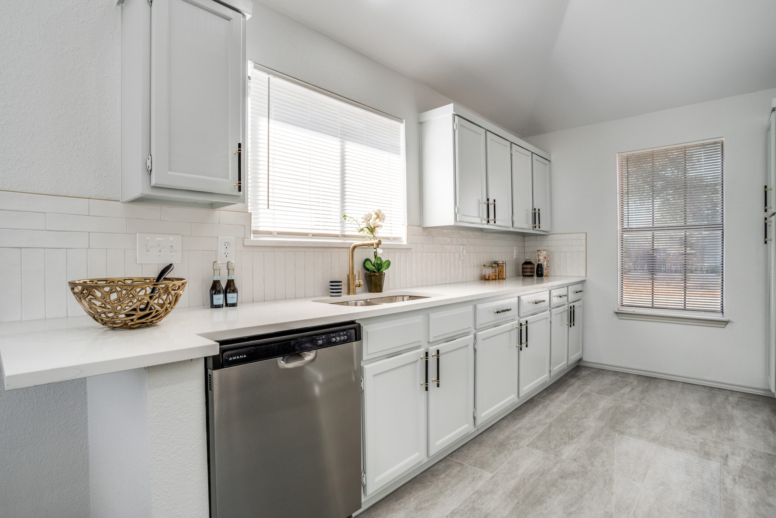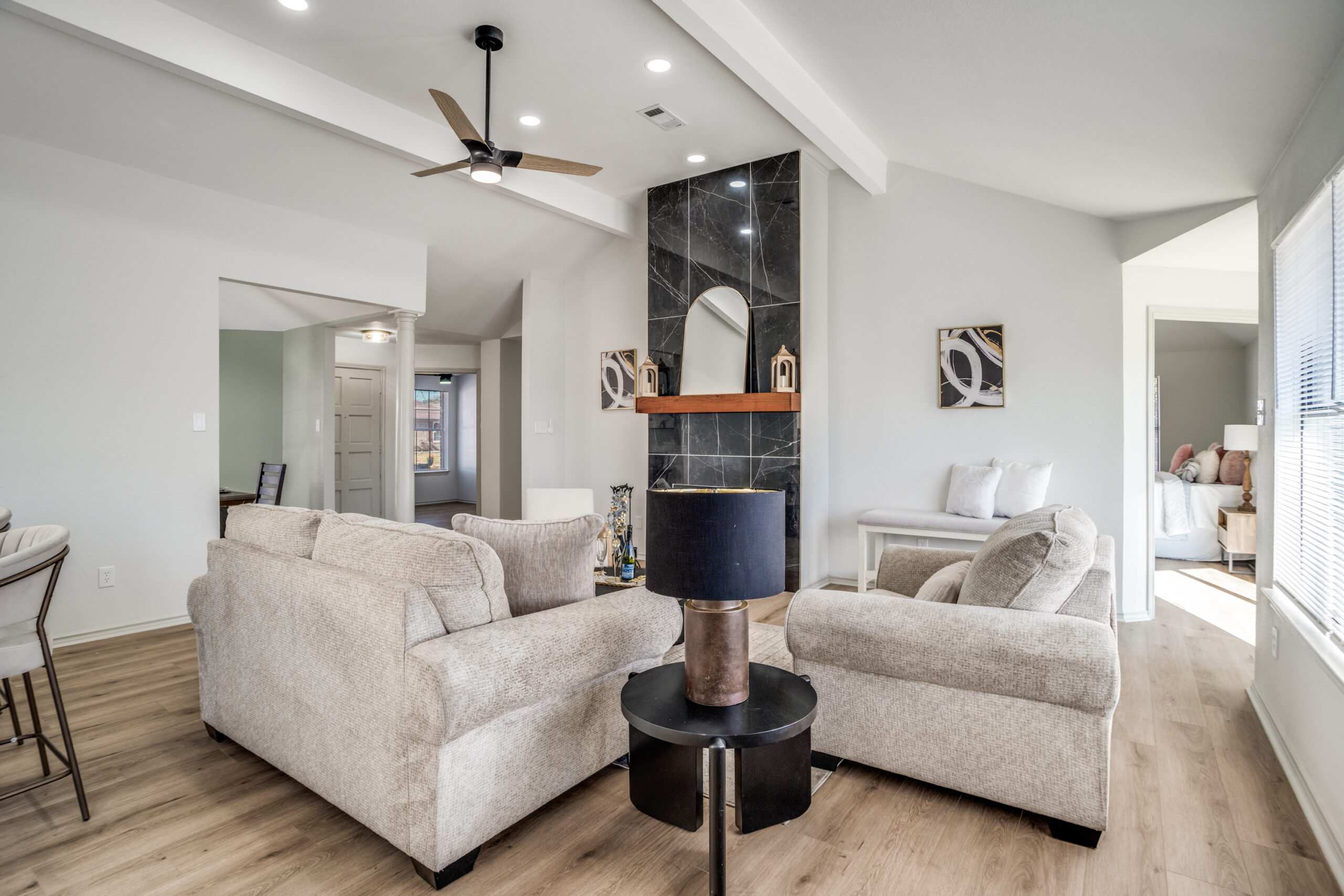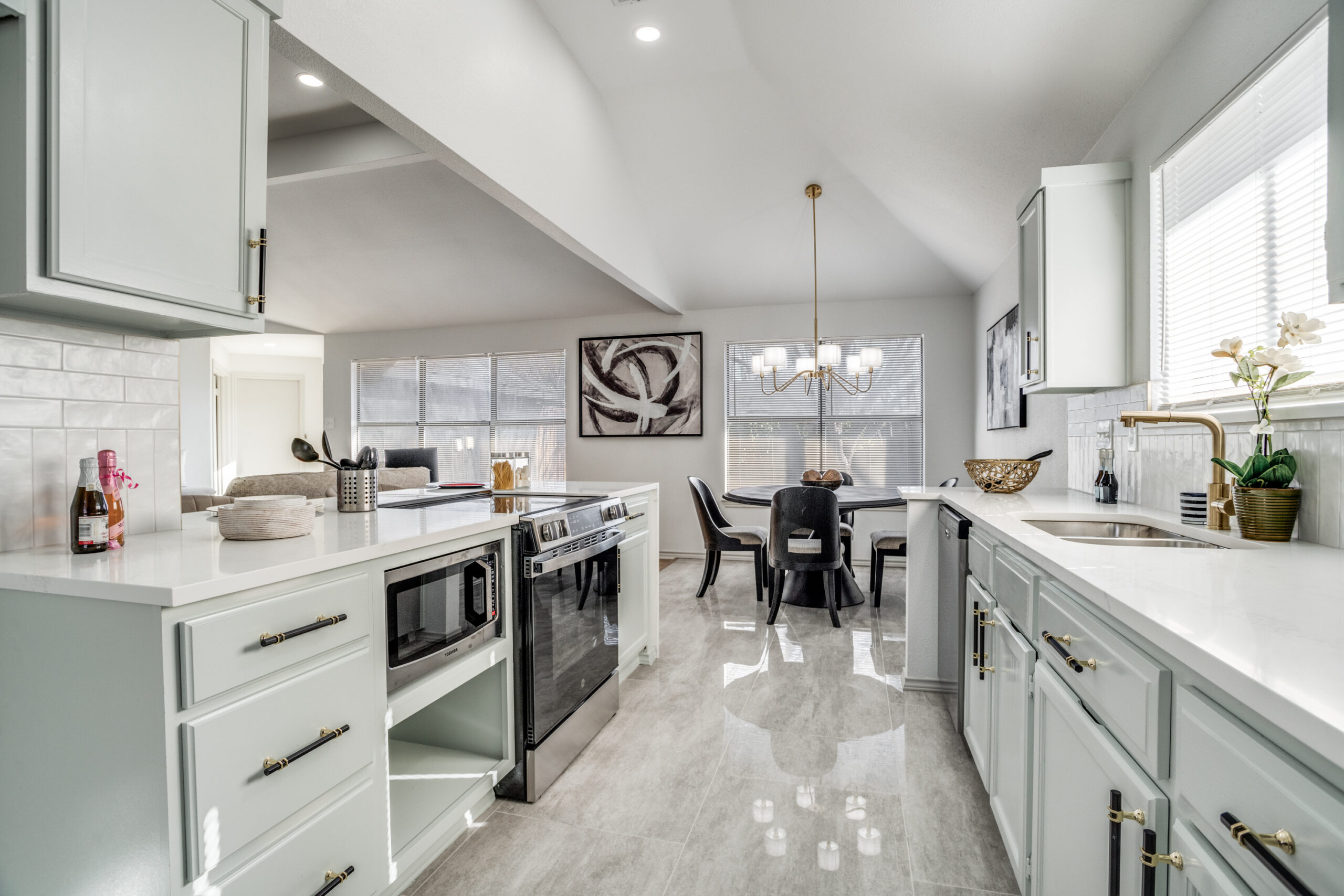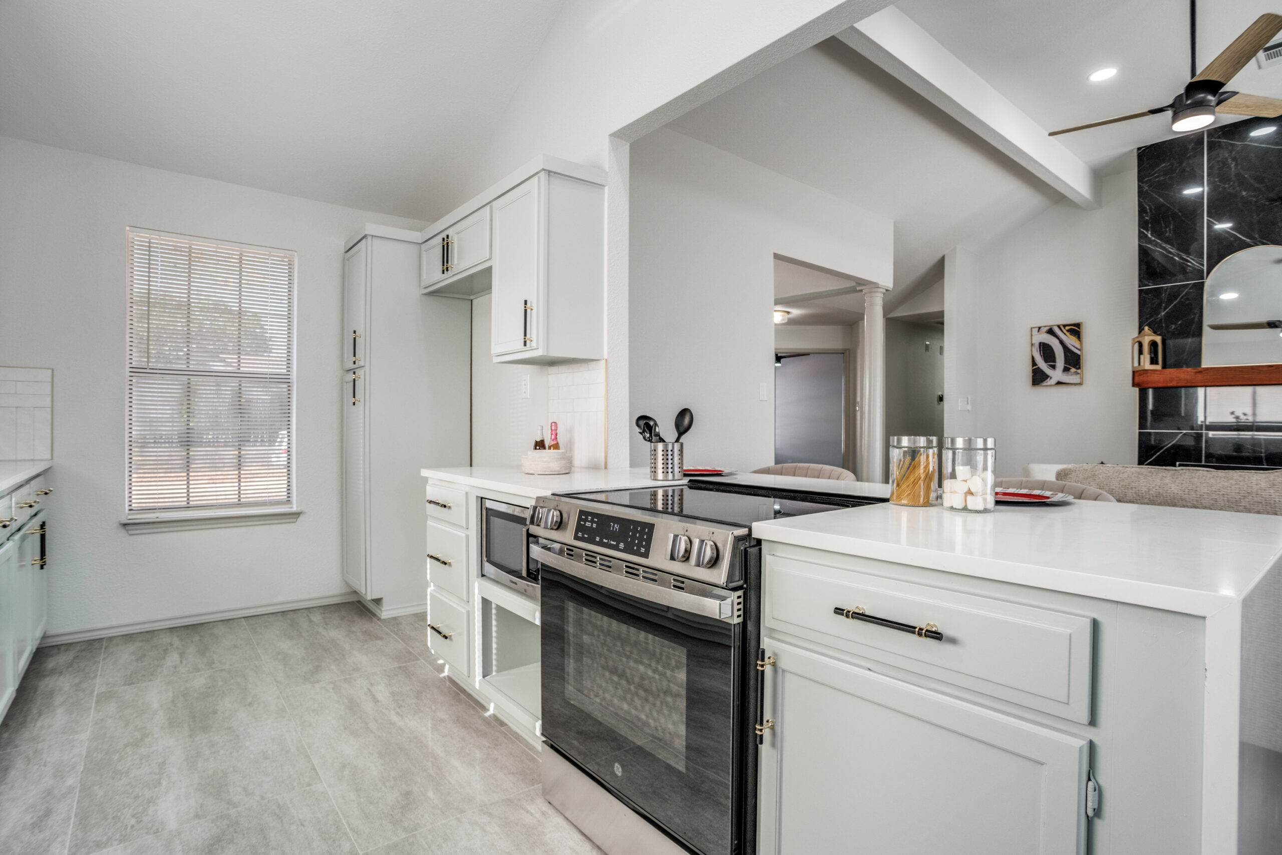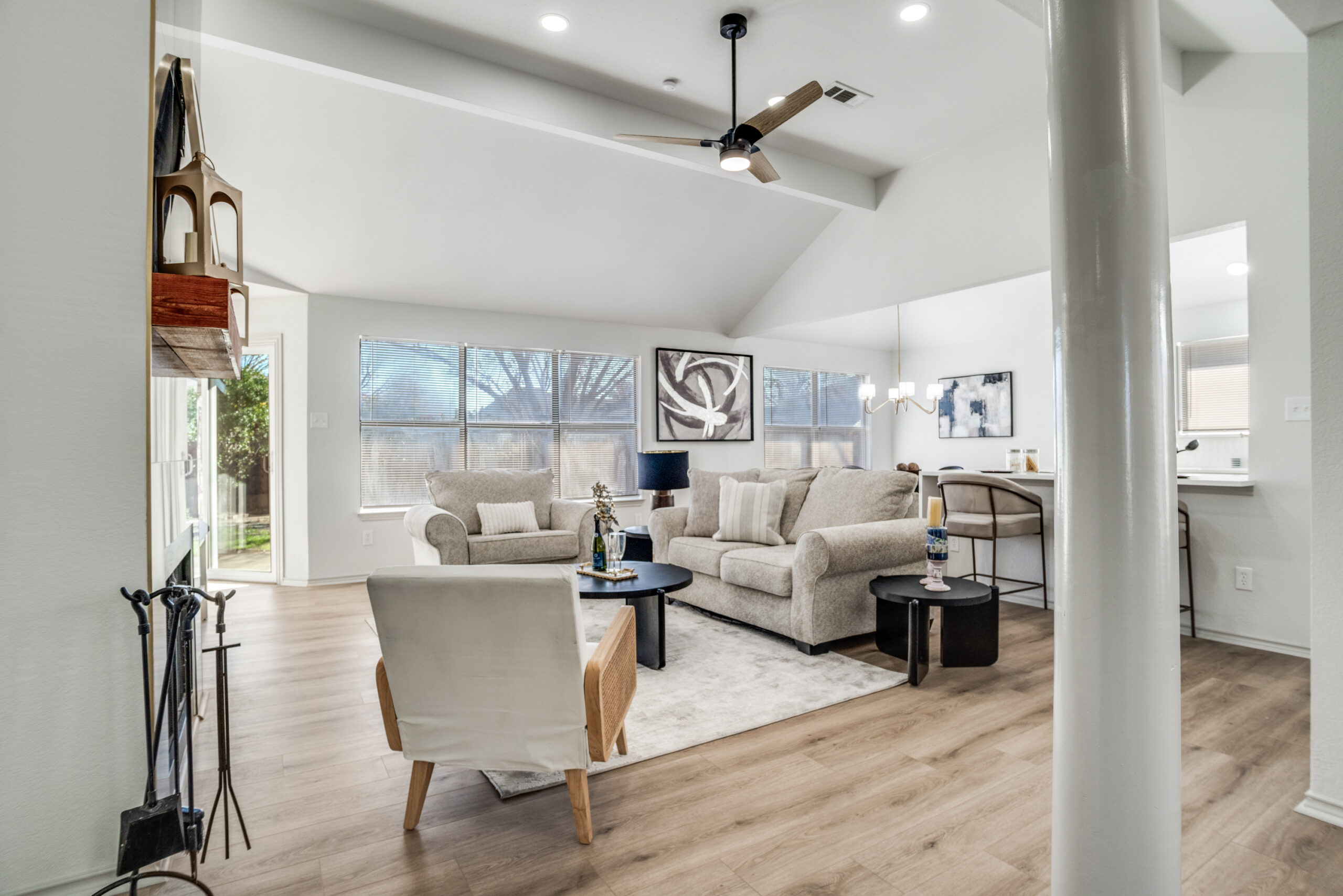 Welcome home to this beautifully renovated 3-bedroom, 2-bath residence located in one of Allen’s most desirable locations. Recent upgrades include a brand-new roof, new flooring throughout, updated doors and light fixtures, and a completely redesigned kitchen and bathrooms. Upon entry, you are greeted by vaulted ceilings, a bright and open floor plan, and a striking floor-to-ceiling statement fireplace. The formal dining room offers versatility and may also serve as a second living area, home office, or flex space. Those who enjoy cooking and entertaining will appreciate the quartz countertops, refinished cabinetry, and stainless steel appliances in the kitchen. The spacious primary suite features a stunning new double vanity and a large walk-in shower. The private, fenced backyard includes a generous open patio and ample space for children and pets to play. Ideally located just two blocks from Story Elementary and Story Park, which spans 10 acres and offers walking and biking trails, a playground, pavilion, basketball courts, and more. This home truly has it all—welcome home!